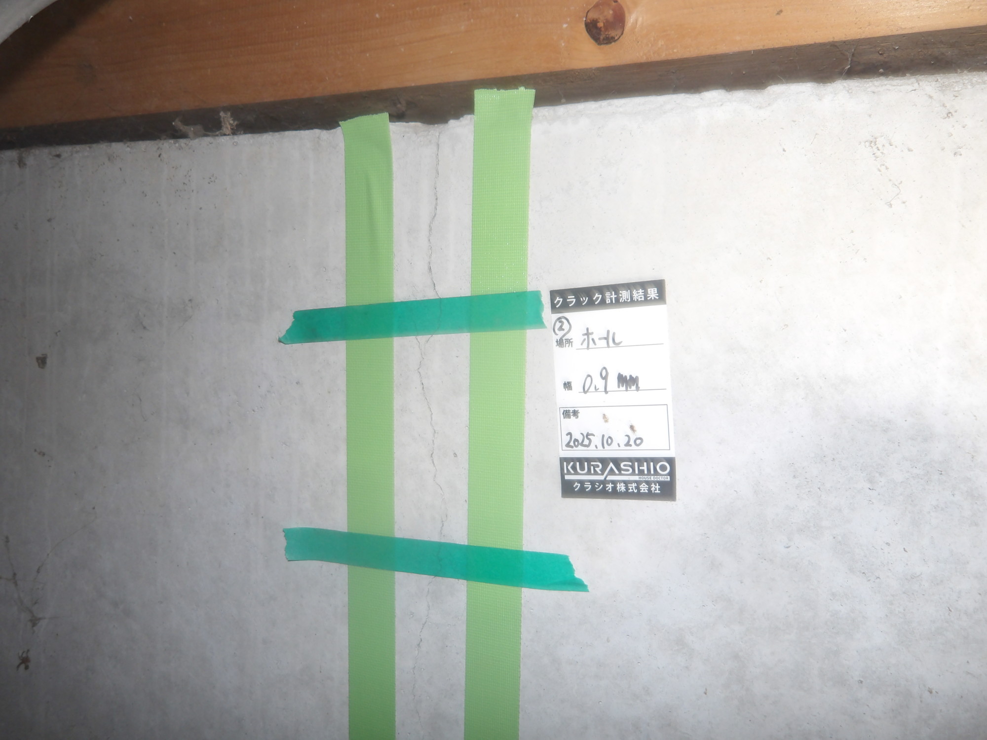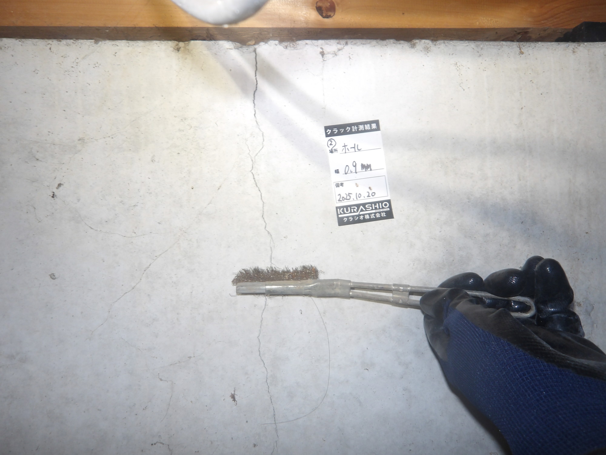経年劣化で基礎コンクリートの複数個所にクラックが発生しており、