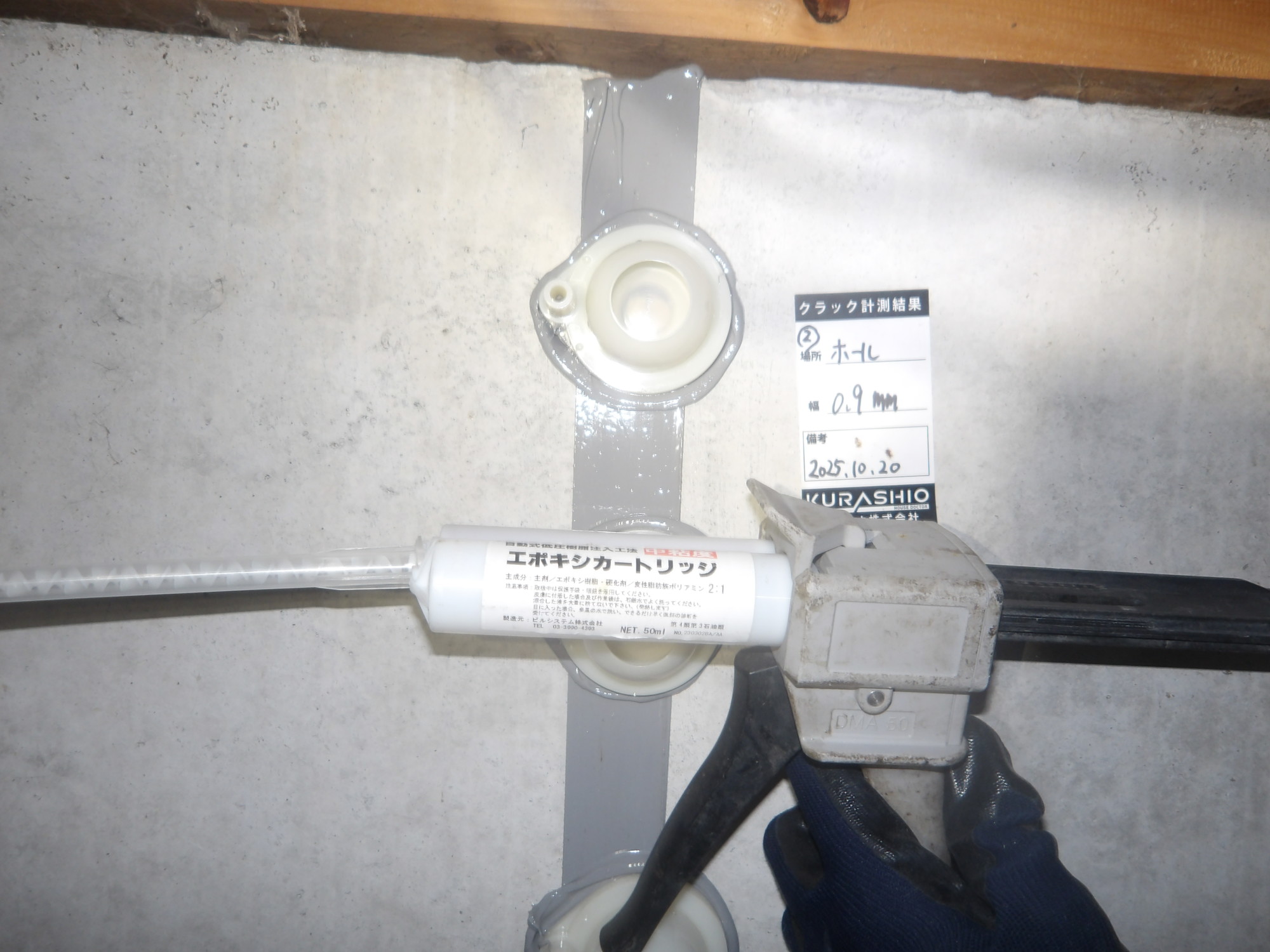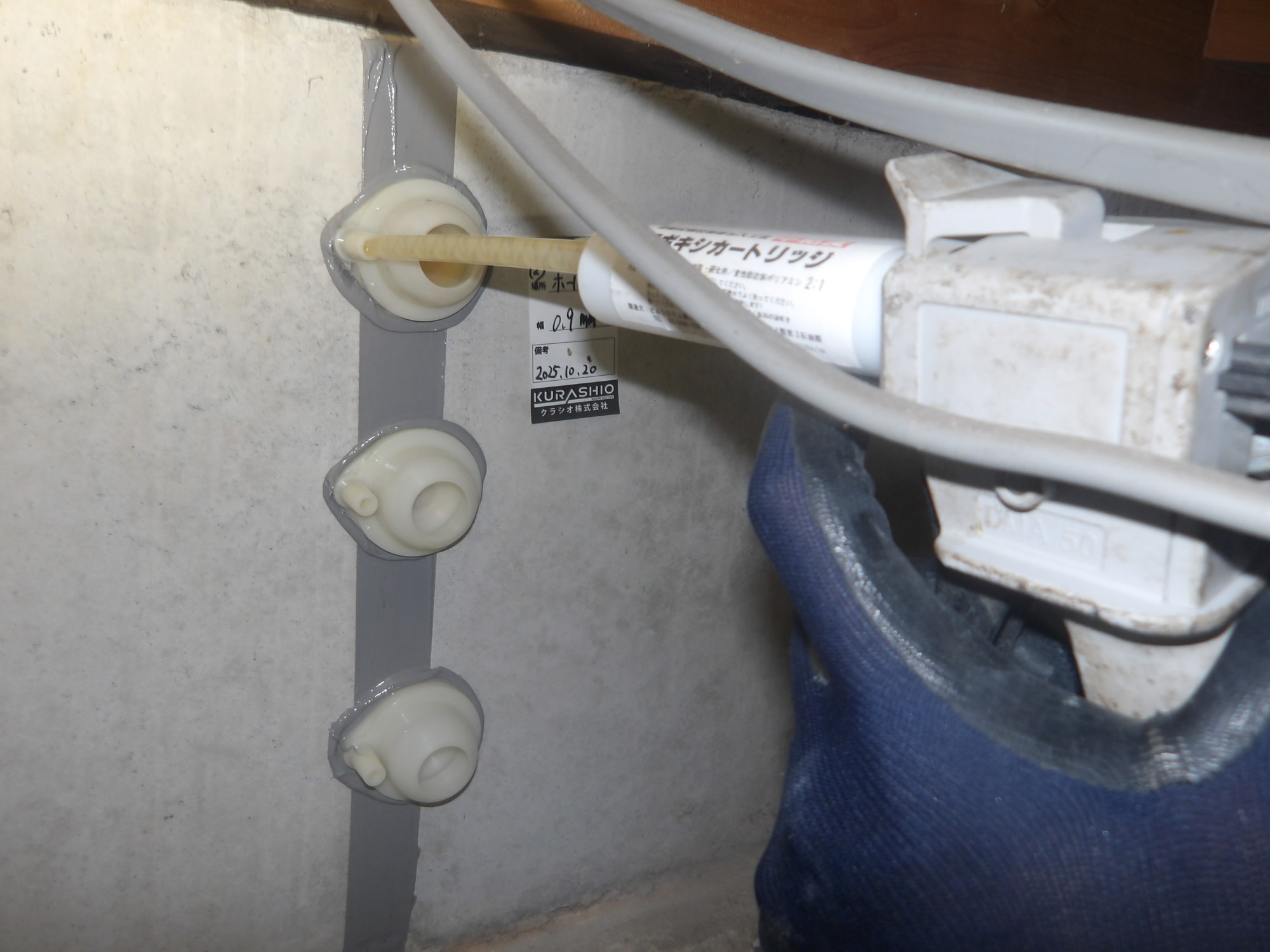 専用カートリッジで樹脂を圧入し、内部までしっかりと充填して強度を回復させました。