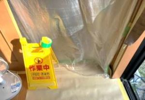 床下点検口の養生と転落防止対策を行い、安全に作業を開始します。